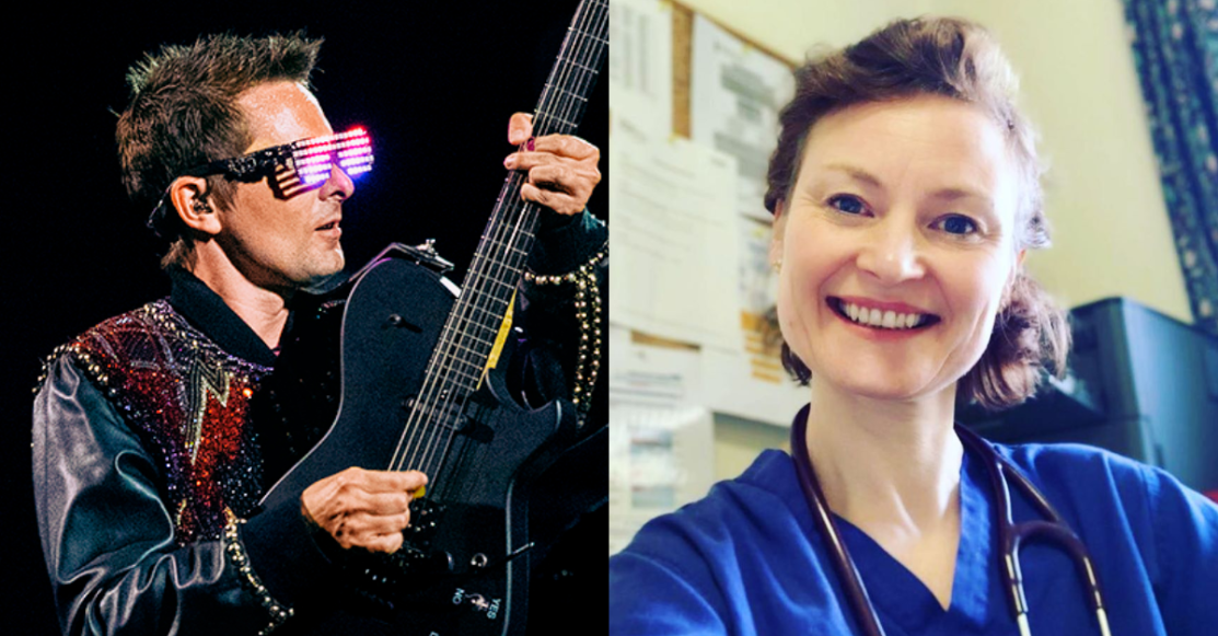 Il frontman dei Muse ha condiviso due foto su instagram, nella prima compare sua cugina, la dottoressa Claire Bellamy, mentre nella seconda mostra alcune protezioni che in questi giorni Matt sta inviando a Claire e a tutti i suoi colleghi, comprese le mascherine.