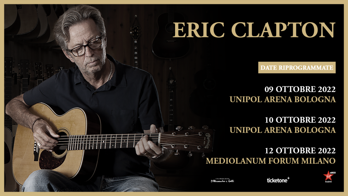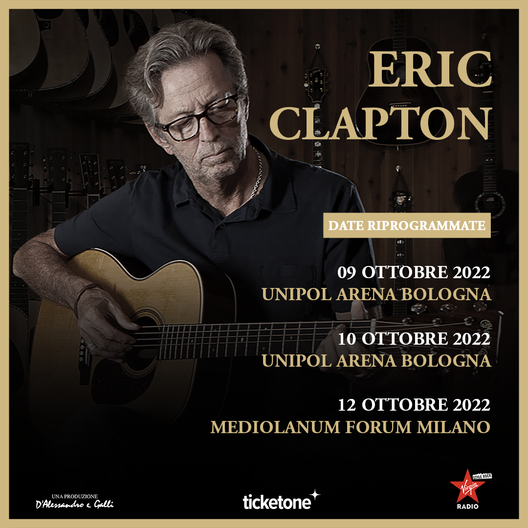 I fan di Eric Clapton potranno finalmente ascoltare in ottobre uno dei chitarristi e interpreti più importanti della storia della musica dopo il lungo stop dovuto al Covid, dapprima in forma di pandemia che ha bloccato per due anni i concerti previsti nel 2020 e poi in forma di contagio diretto, per fortuna senza conseguenze, che ha costretto Mr Slowhand ad annullare quattro concerti del suo tour europeo, tra i quali i tre italiani, quando è risultato positivo al Coronavirus la scorsa settimana.