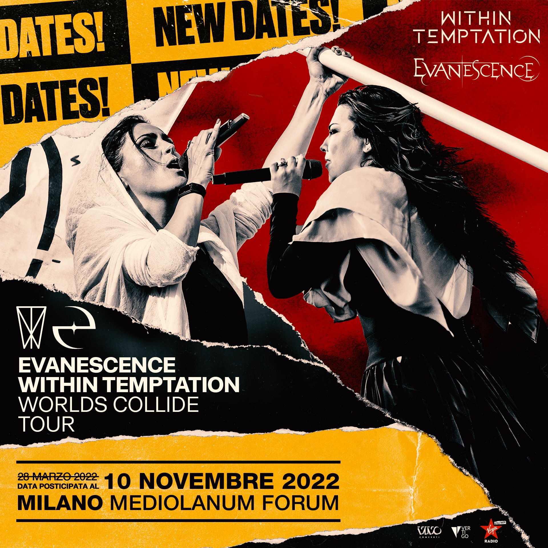 Il concerto degli Evanescence + Within Temptation, originariamente previsto al Mediolanum Forum di Milano per il 28 marzo, è stato riprogrammato al 10 novembre 2022 per motivi indipendenti dalla volontà degli artisti