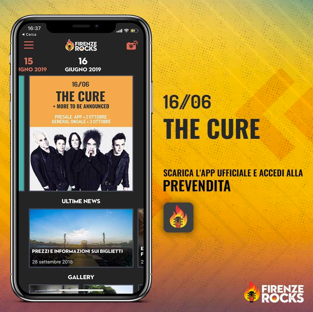 I Cure sono stati i primi headliner annunciati dell’edizione 2019 di Firenze Rocks. La band inglese salirà sul palco della Visarno Arena nella giornata di domenica 16 giugno per un unico grande concerto in Italia. I biglietti per il live sono già disponibili tramite l’APP ufficiale di Firenze Rocks e su www.ticketmaster.it, www.ticketone.it e in tutti i punti vendita autorizzati.