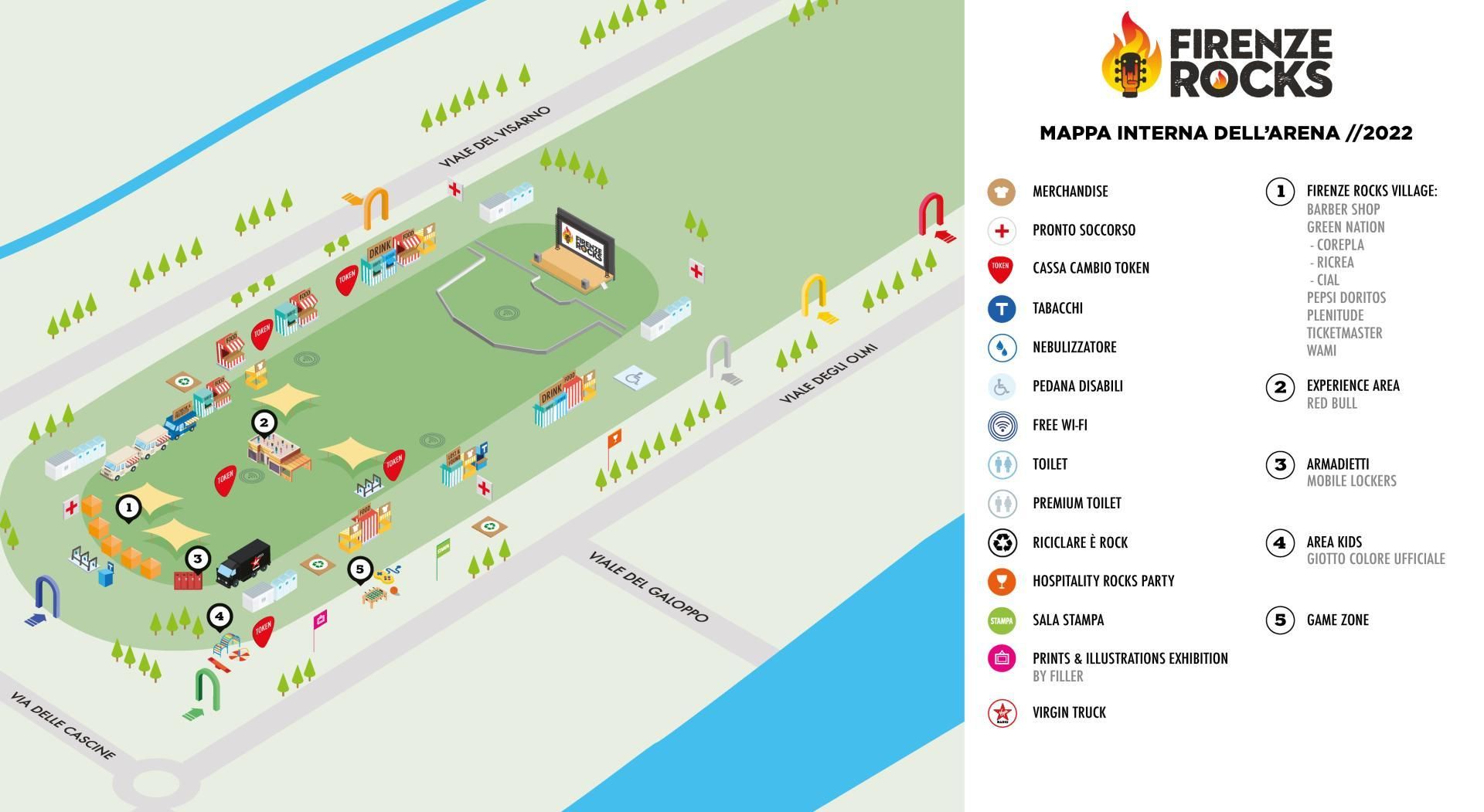 La mappa dell’area esterna per Firenze Rocks 2022: