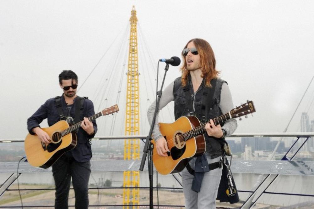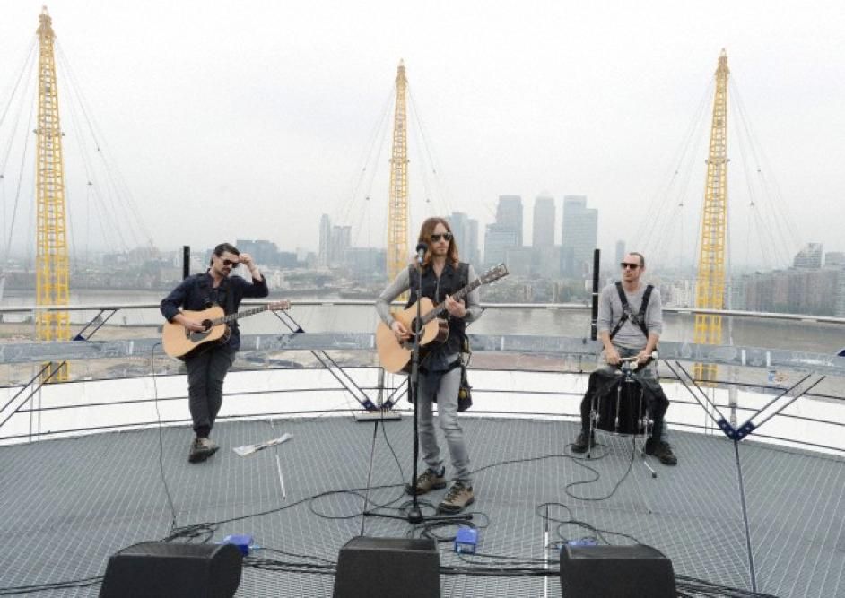 30 Seconds To Mars live sul tetto 19/06/2013 Condividi Le immagini del concerto speciale dei 30 Seconds To Marsย sul tetto della O2 Arena di Londra (Photo Corbis Images)