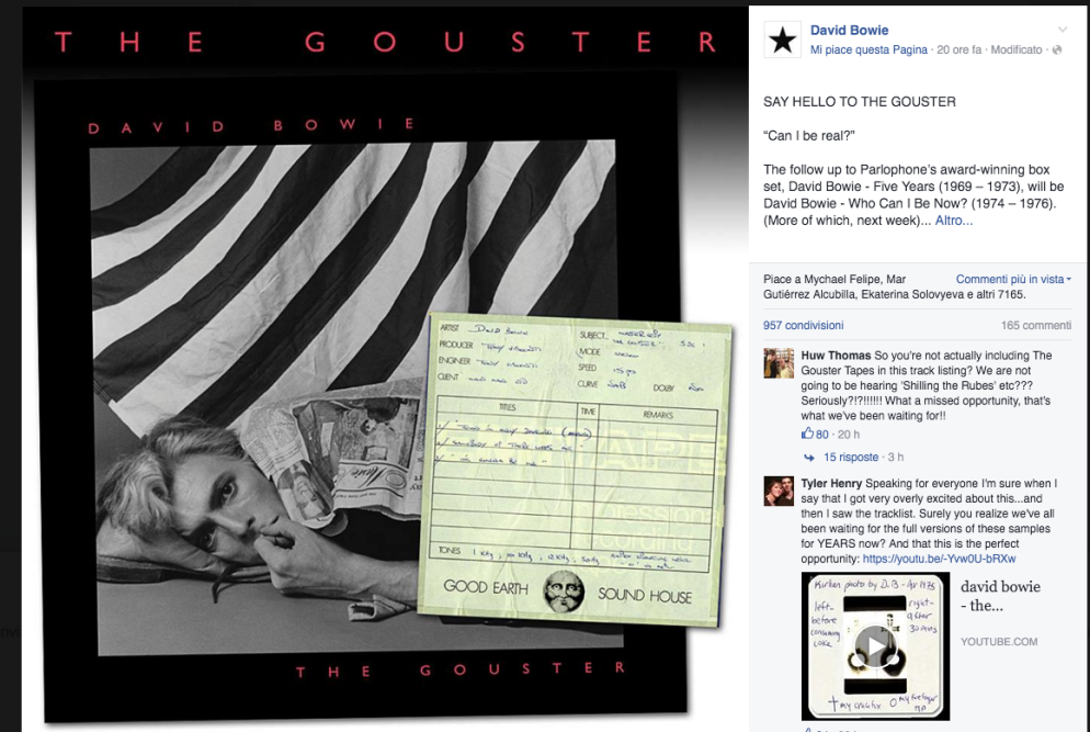 L’annuncio dell’uscita dell’album è stato dato dalla pagina Facebook ufficiale di David Bowie.