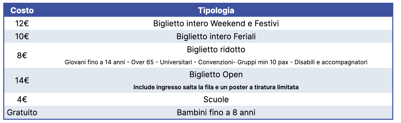 Ultimo ingresso 30 minuti prima dell’orario di chiusura