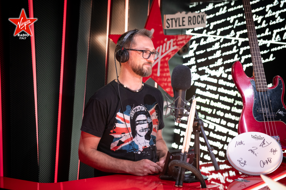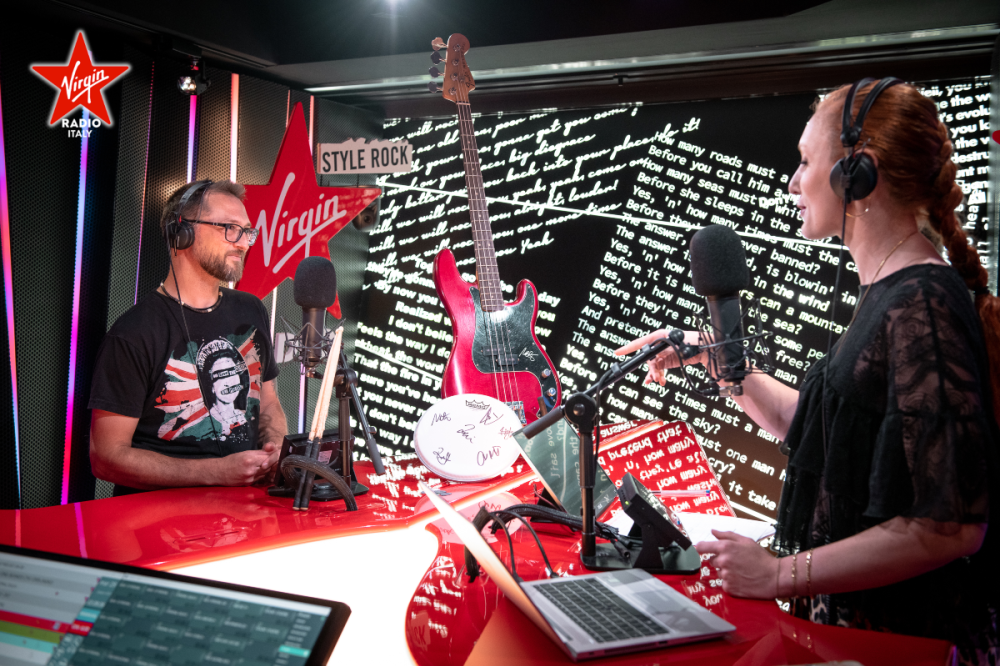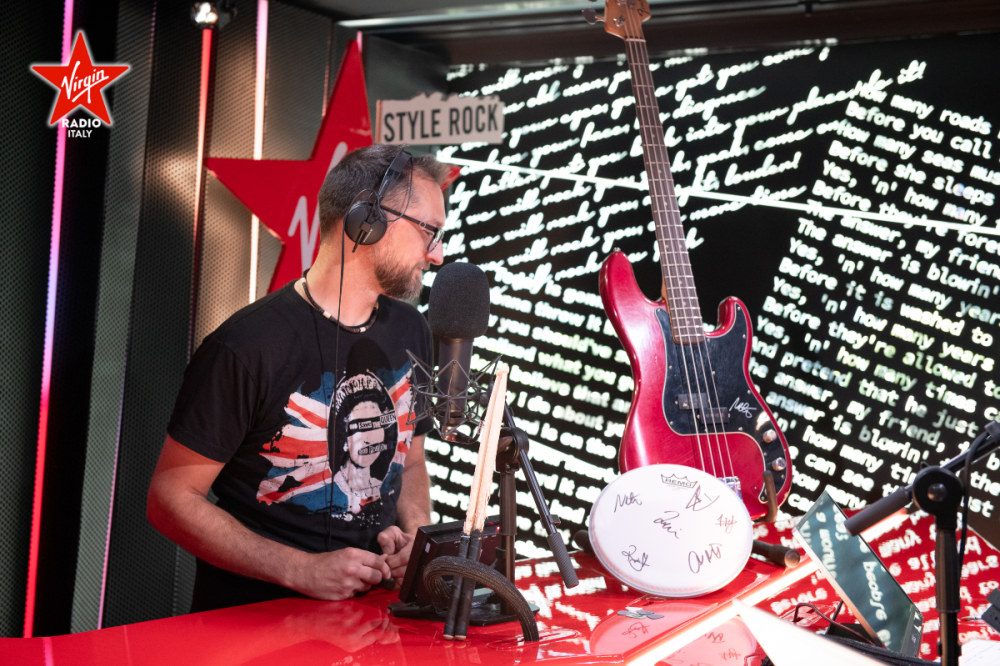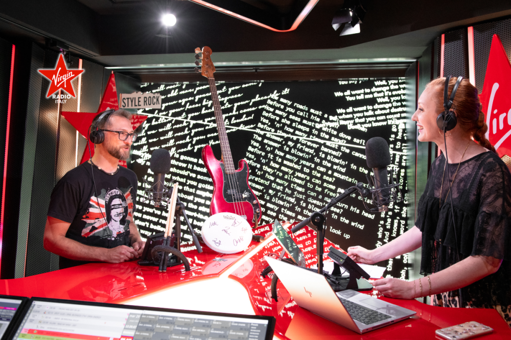 Virgin Radio โ€บ Foto โ€บ Foto โ€บ Foo Fighters, la consegna del basso autografato di Nate Mendel e delle memorabilia della band durante Personal Giulia