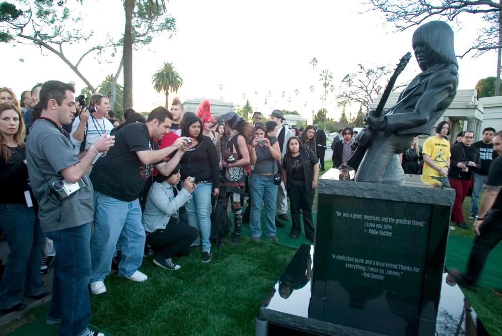 Le immagini del 15 gennaio 2005 quando allโHollywood Forever Cemetery venne svelata la statua dedicata a Johnny Ramone alla presenza di Eddie Vedder, Anthony Kiedis, Nicolas Cageโฆ (Photo Corbis Images)