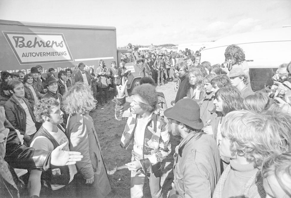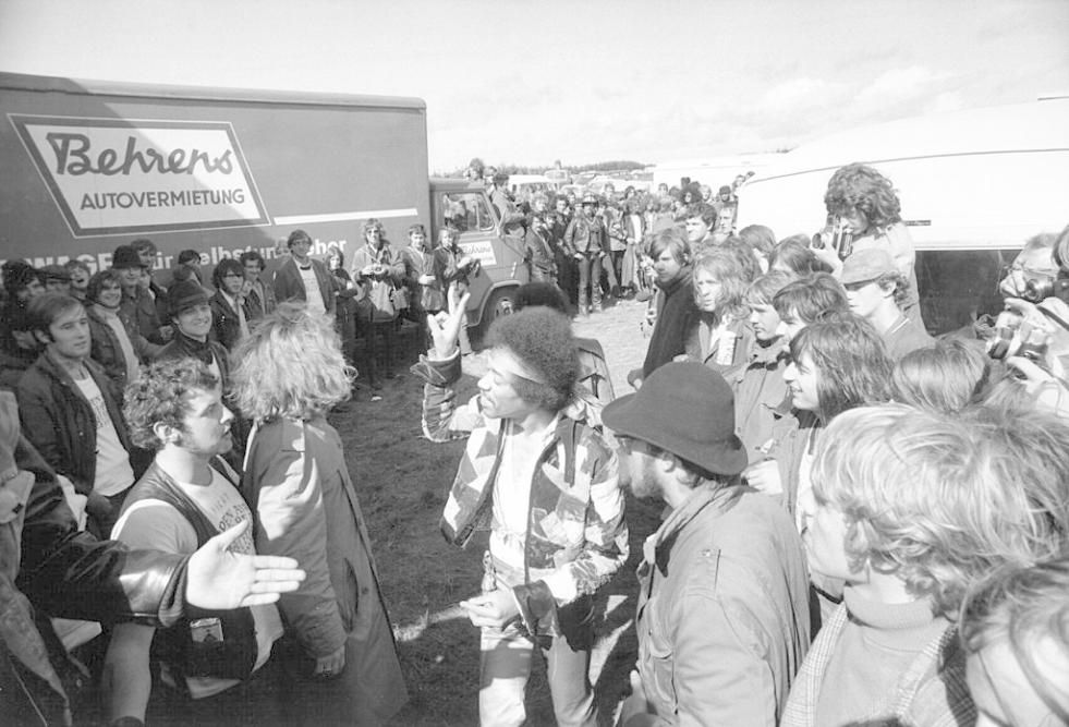Il 6 settembre 1970 Jimi Hendrix, al all’Open Air Love and Peace Festival di Fehmarn, sale per l’ultima volta su un palco. Guarda le foto e scopri la scaletta del concerto (Photo Getty Images)