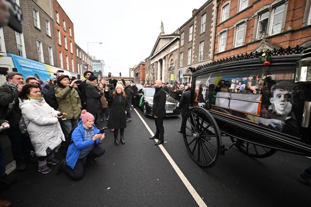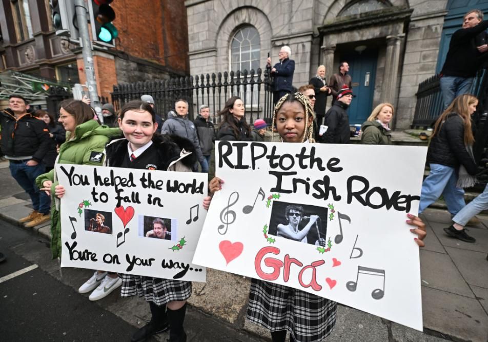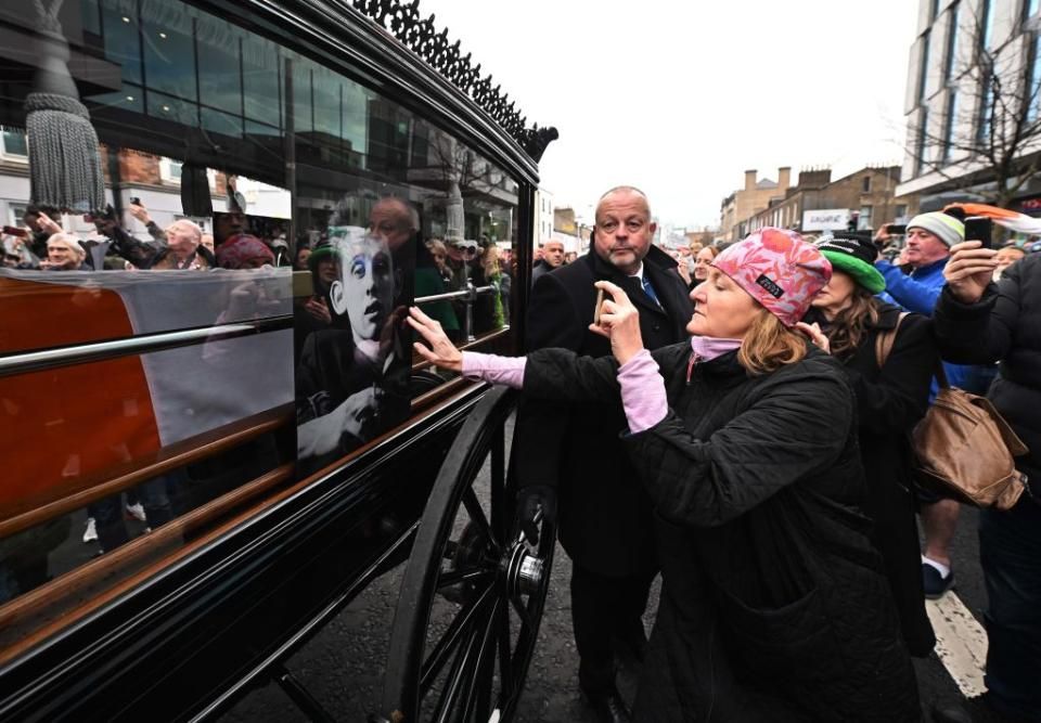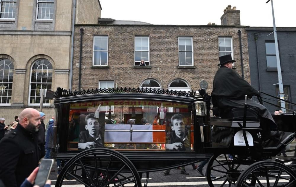 Dublino si è fermata per salutare Shane MacGowan. Una carrozza con la salma dell’artista ha attraversato le starde della capitale irlandese per poi essere strasferita in una piccola chiesa nella contea di Tipperary. (photo by Getty Images)