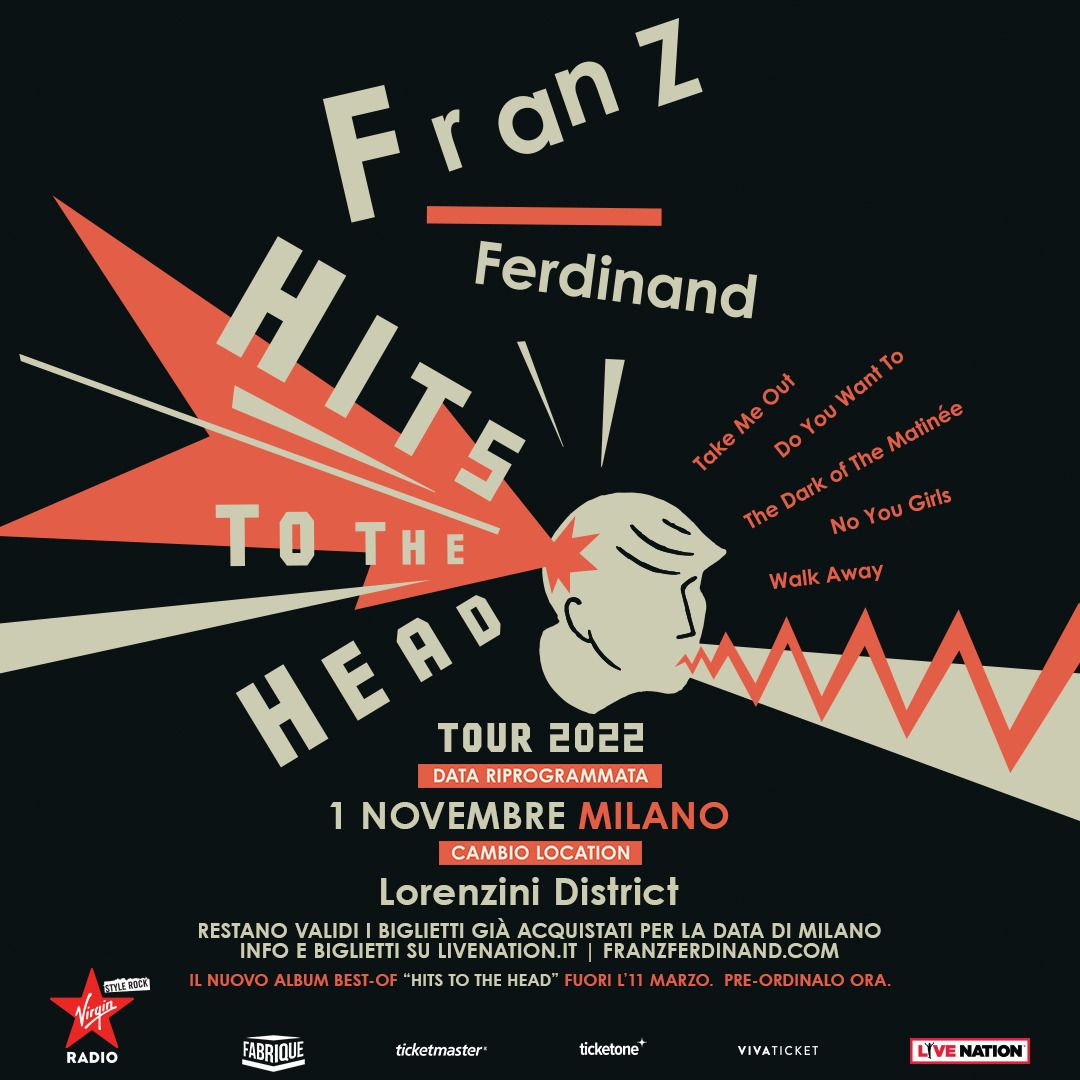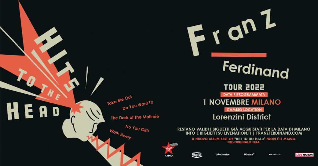 L’appuntamento del Hits To The Head Tour 2022 dei Franz Ferdinand, previsto originariamente al Mediolanum Forum di Milano il 24 marzo 2022, è stato riprogrammato al 1° novembre 2022 al Lorenzini District, Milano.