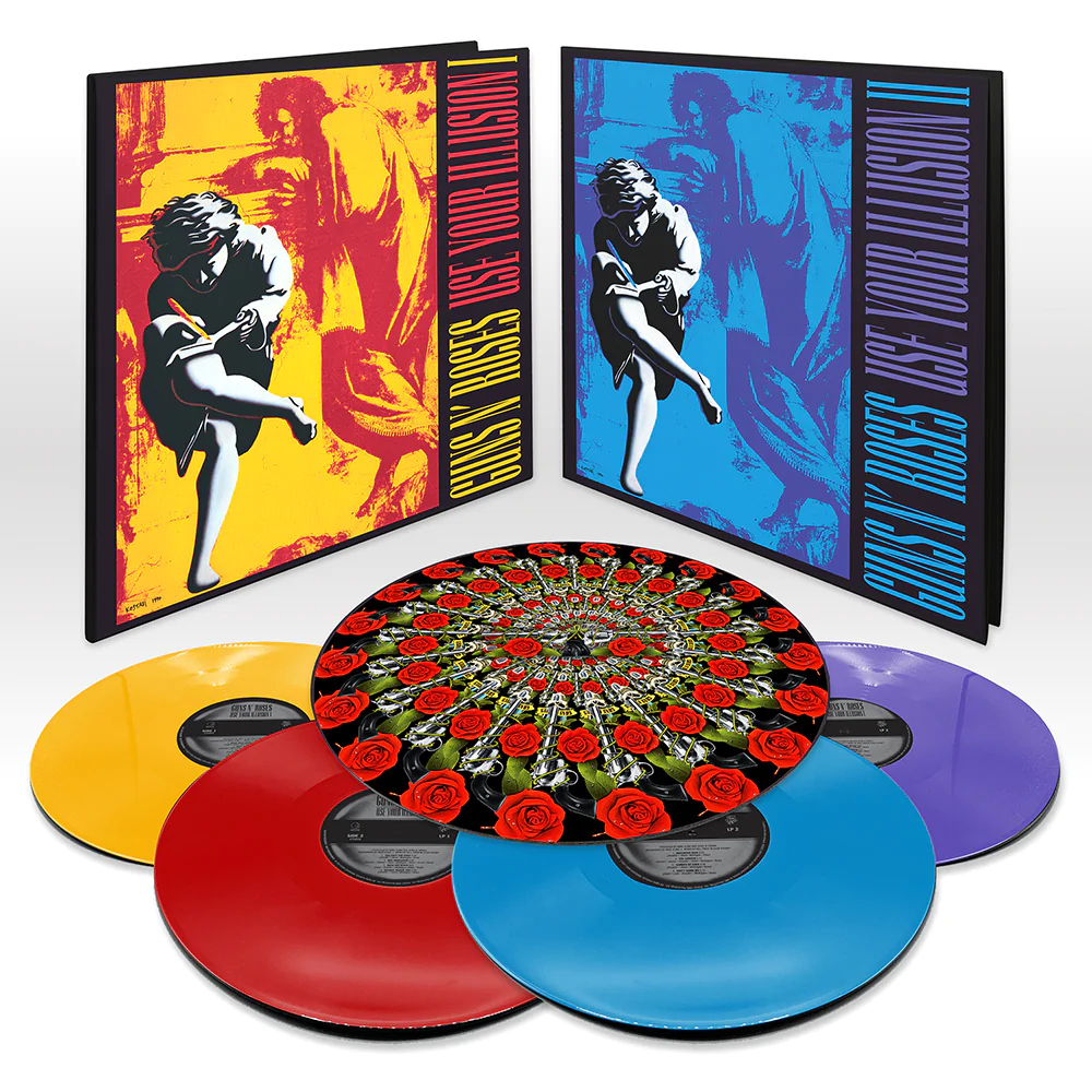 I due album Use Your Illusion I & II sono inclusi in questa LTD Edition di 4 LP con vinile colorato, copertine gatefold e audio rimasterizzato.