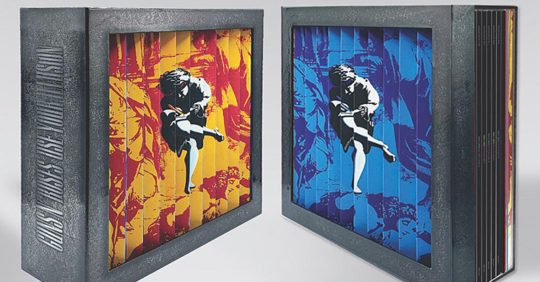 I due boxset GUNS N’ ROSES – USE YOUR ILLUSION I & II Super Deluxe 7 CD + Blu-ray e Super Deluxe 12 LP + Blu-ray comprendono 97 canzoni, 63 delle quali sono tracce inedite audio e video. Sui due lati del cofanetto sono state ricreate le immagini anamorfiche delle due copertine degli album. I vinili sono stati stampati su vinile nero 180g. e confezioni in gatefold. Le due edizioni Super Deluxe includono il concerto completo Live In New York, registrato al Ritz Theatre il 16 Maggio 1991, con un nuovo missaggio dai nastri multi-traccia originali. Questo leggendario show è uno dei tre warmup show per il tour di Use Your Illusion con Izzy Stradlin alla chitarra, la versione originale di Don’t Cry e una performance speciale di You Ain’t The First, entrambe con Shannon Hoon dei Blind Melon ospite alla voce. Nei Super Deluxe boxset, realizzati in Tiratura Limitata, è stato inoltre incluso un altro concerto completo: Live In Las Vegas, registrato al Thomas & Mack Center il 25 gennaio 1992, anche questo con un nuovo mix dai nastri multi-traccia; qui però la band si esibisce con il nuovo chitarrista Gilby Clarke. Il bonus disc è un Blu-ray Video del film concerto Live In New York, trasferito dalla pellicola 35mm al nuovo formato 4K UHD con audio mixato in Dolby Atmos, Dolby TrueHD 5.1 Surround e PCM 48kHz 24-bit stereo. Il Blu-ray include inoltre un nuovo video live di You Could Be Mine.
