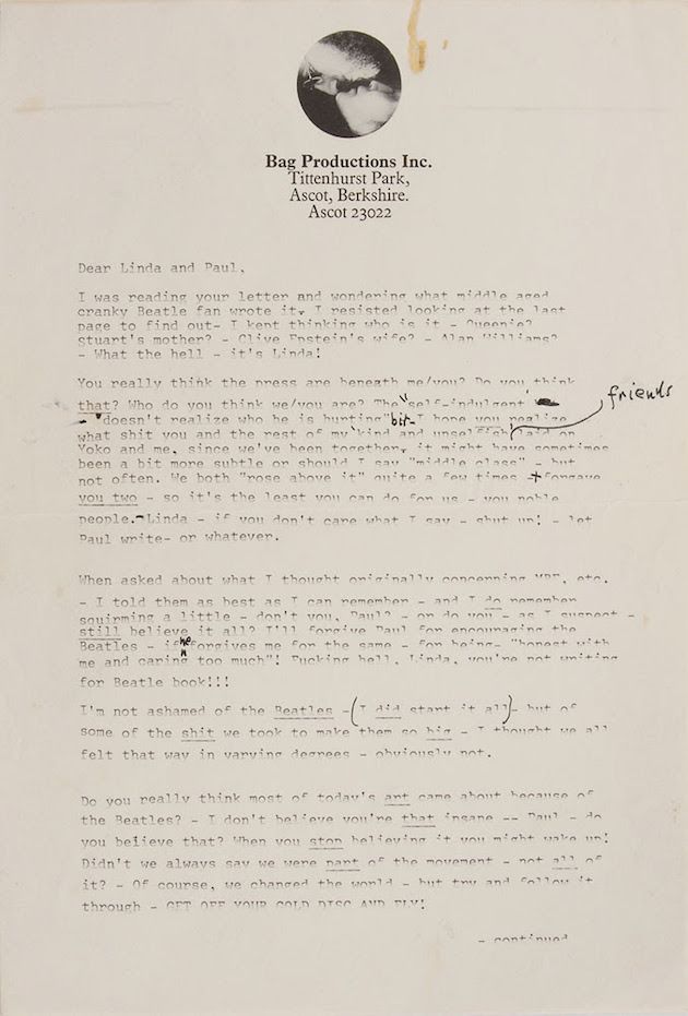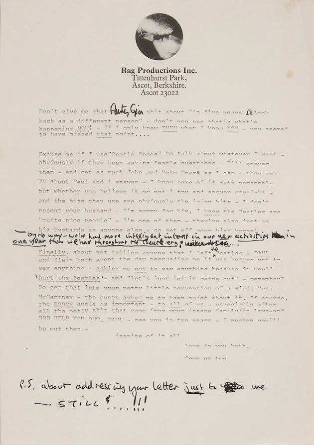 E come spiegano anche dalla RR Auctions: “La lettera cattura la rivalità tra due uomini nel corso di mesi e forse anche di anni, nel periodo della rottura dei Beatles”.