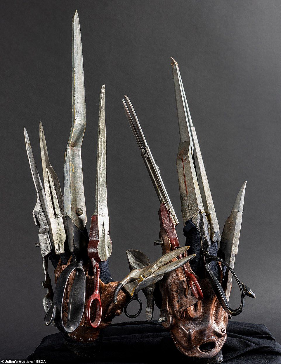 I guanti di Edward sono solo uno dei 400 memorabilia dell’asta organizzata da Julien’s Auction. Nell’elenco ci sono anche una lettera indirizzata a Harry Potter (con tanto di sigillo di Hogwarts) in uno dei primi film della saga, la canottiera di Bruce Willis in Die Hard, il distintivo dell’FBI di Jodie Foster ne Il Silenzio degli Innocenti, la maschera indossata da George Clooney in Batman and Robin, quella di Val Kilmer in Batman Forever e il vestito da Catwoman di Michelle Pfeiffer in Batman Returns. Il pezzo più raro viene dal set di Alien, la saga di fantascienza di Ridley Scott: il primo prototipo a grandezza naturale dell’alieno disegnato nel 1979 dall’illustratore H.R.Giger che viene scartato perché troppo trasparente e quindi non adatto alle riprese: «Un oggetto di cui si sono perse le tracce da molto tempo e che si pensava fosse stato addirittura distrutto» ha scritto Julien’s Auction nella presentazione dell’asta.