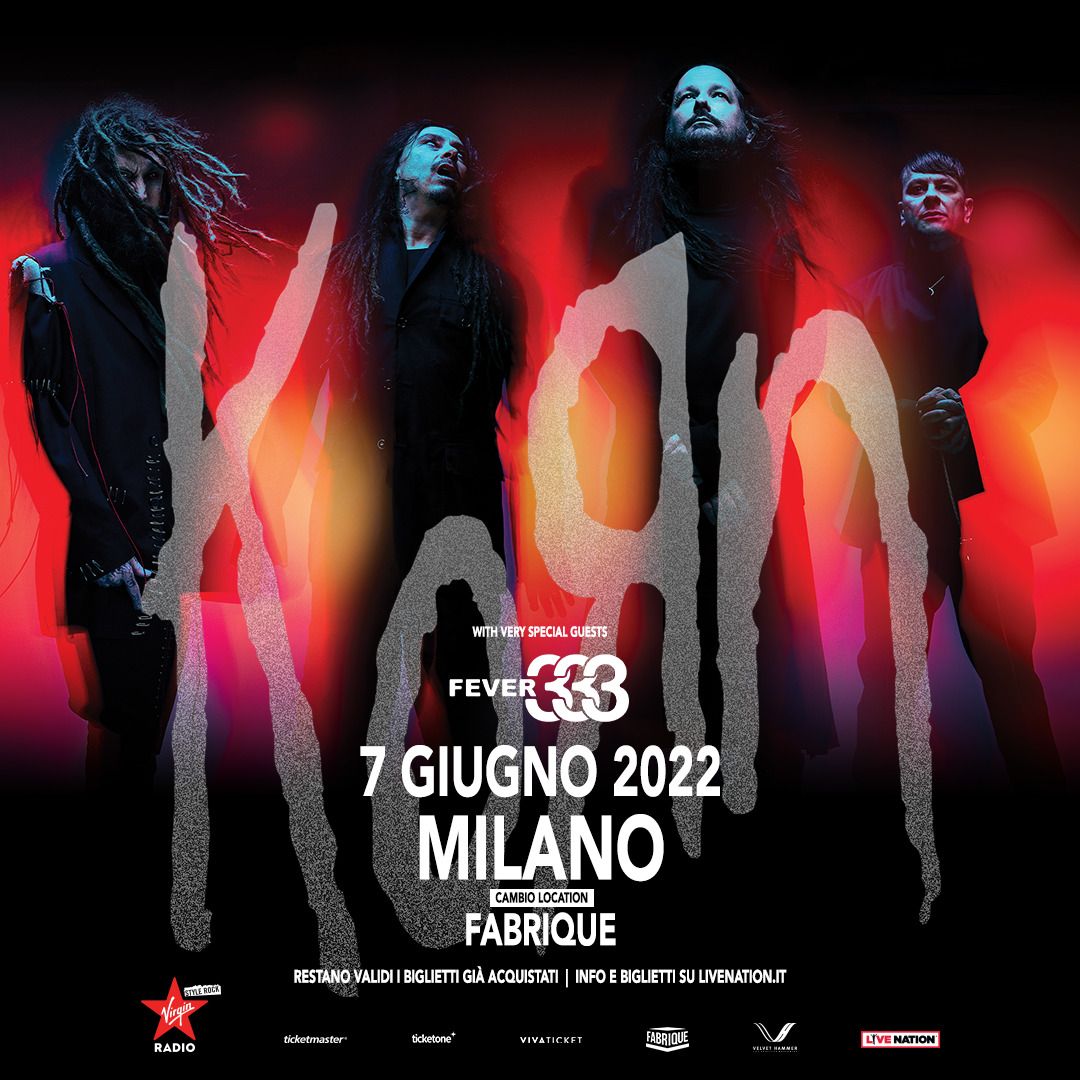 Per motivazioni indipendenti dalla volontà della band, il concerto dei Korn previsto martedì 7 giugno all’Ippodromo SNAI San Siro di Milano, si sposta nella stessa data al Fabrique di Milano.