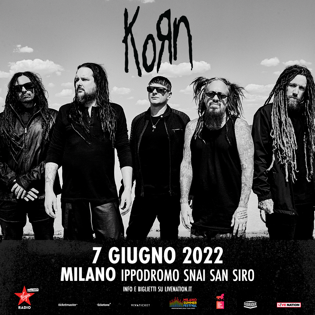 – Prevendita tramite #MyLiveNation dalle ore 11:00 di mercoledì 26 maggio. Registrati gratuitamente e assicurati i biglietti prima di tutti! Vai su > bit.ly/Korn_Milano