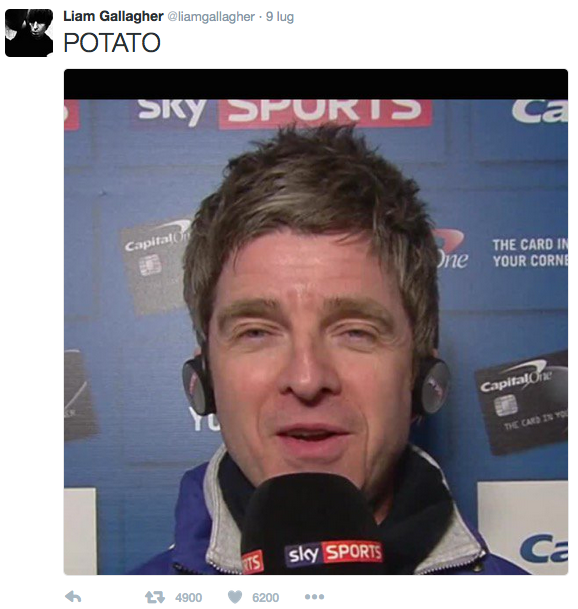 Ormai è una costante. Liam Gallagher ed il suo uso dei social sembra quasi esclusivamente indirizzato al fratello Noel e quasi sempre in tono non esattamente amichevole. Nell’ultimo periodo le cose sono diventate anche abbastanza strane visto che Liam si è limitato a pubblicare le foto del fratello accompagnate con la didascalia “Potato” (patata, ndr). Noel dal canto suo sembra non prendersela troppo: “Non è una cosa da lui. Immagino che lo faccia per rimanere rilevante. Se fossi lui di cos’altro scriveresti su Twitter? Di come stanno andando le sue collezioni primavera/estate? Se mai dovesse riuscire a intervistarlo e fargli questa domanda, penso che ti ritroveresti davanti ad una risposta surreale”.