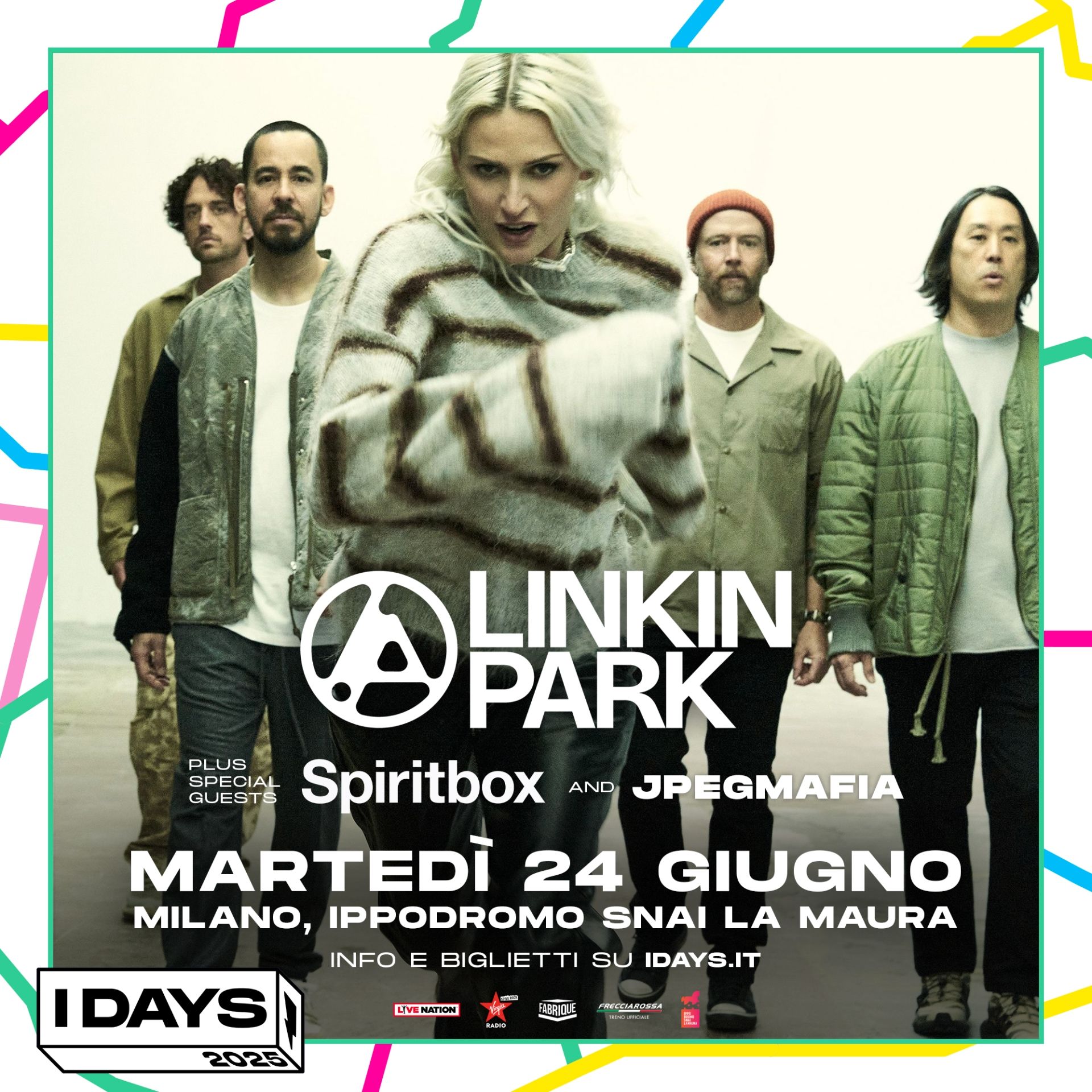 Il ritorno in Italia della band sarà agli I-DAYS MILANO 2025: i LINKIN PARK saranno infatti sul palco dell’Ippodromo Snai La Maura martedì 24 giugno come headliner di una giornata che segnerà indelebilmente l’estate in musica di Milano.