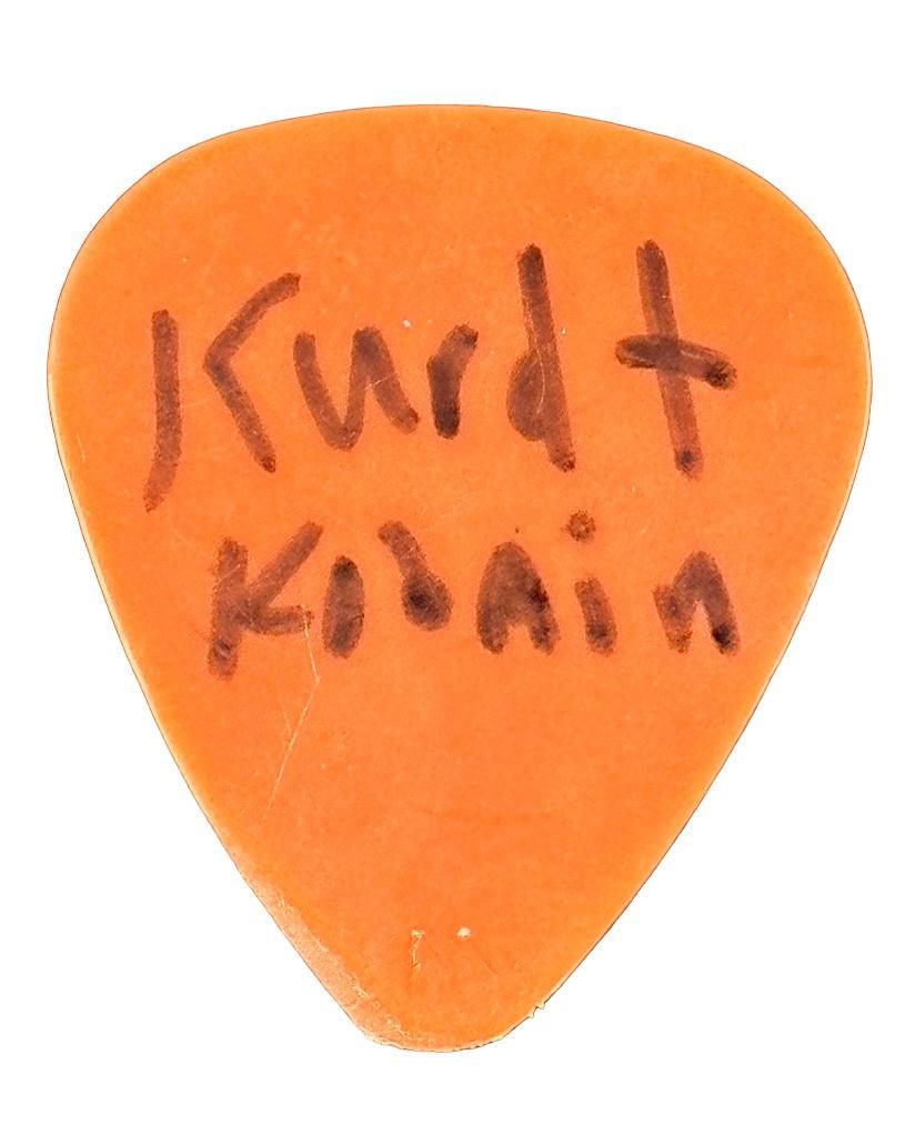 Non si tratta infatti solo di un plettro firmato da Kurt stesso ma uno dei primi cimeli storici dei Nirvana. Venne usato da Cobain nel 1990, poco dopo la pubblicazione di Bleach, l’album di debutto della band che ancora non vedeva Dave Grohl come batterista del gruppo.
