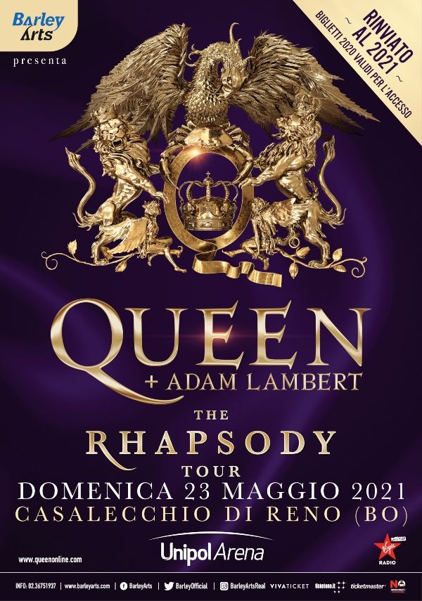 La nuova data del The Rhapsody Tour in Italia sarà all’Unipol Arena di Casalecchio di Reno (Bologna) il 23 maggio 2021.