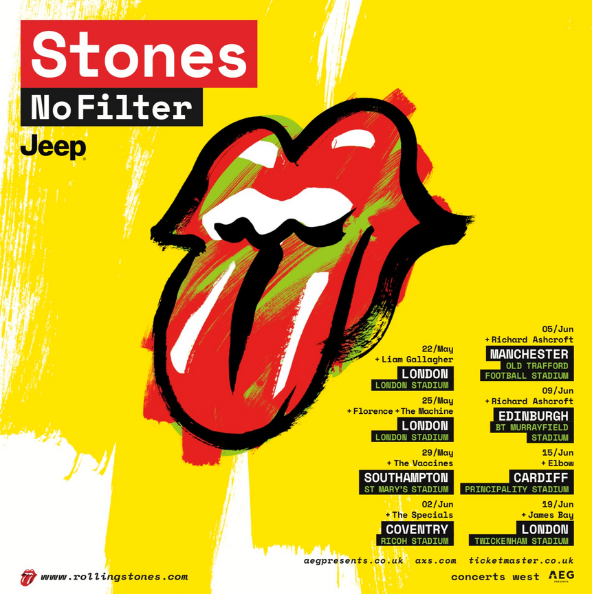 I Rolling Stones hanno rivelato i nomi dei supporter che apriranno i loro concerti nel corso del tour che li vedrà impegnati nel Regno Unito e che avrà inizio a fine maggio. Le otto date previste nel calendario di concerti che vede protagonisti Mick Jagger, Keith Richards, Charlie Watts e Ronnie Wood coinvolgeranno illustri colleghi della scena musicale. Si tratta di nomi di spicco, conosciuti a livello mondiale all’interno del panorama pop-rock.