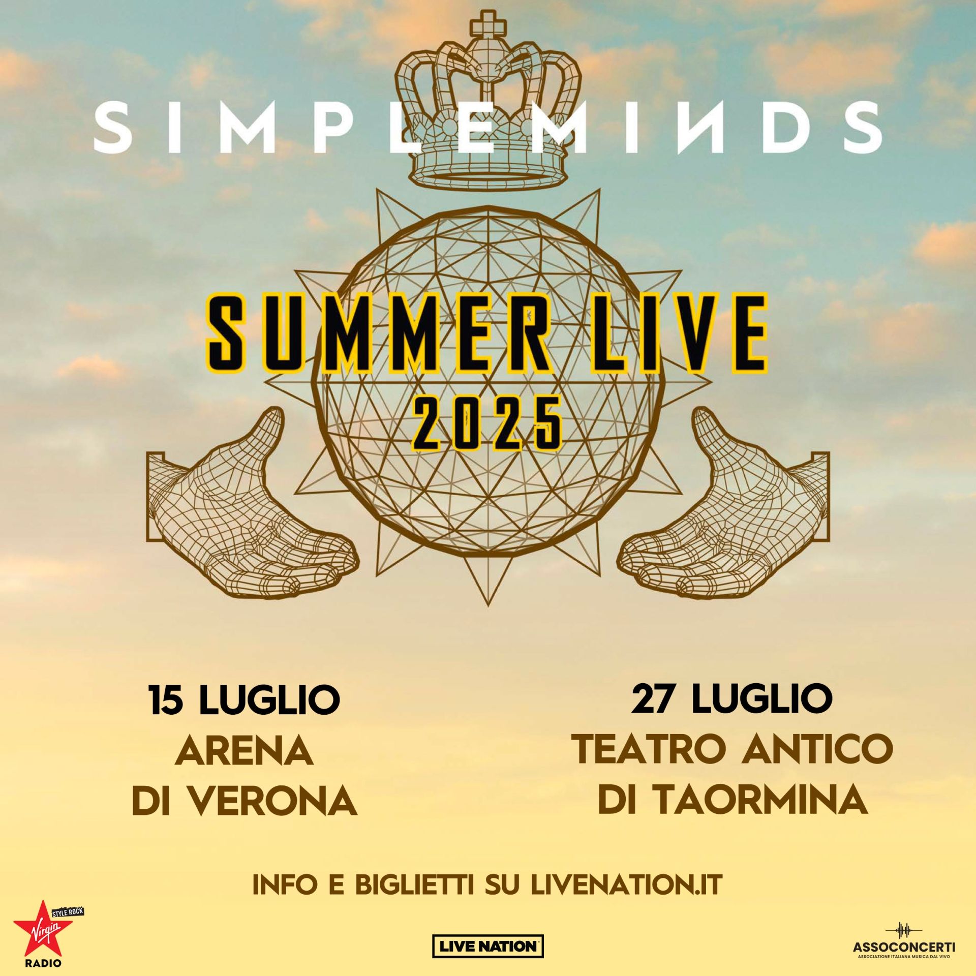 Dopo l’enorme successo del Global Tour 2024 che li ha visti protagonisti nel nostro paese con sei date sold out, a grande richiesta i Simple Minds arrivano in Italia nel 2025, martedì 15 luglio all’Arena di Verona e domenica 27 luglio al Teatro Antico di Taormina. Due luoghi che incarnano la storia e la bellezza artistica dell’Italia faranno da scenario agli show della band scozzese, promettendo un’esperienza dal vivo irripetibile.