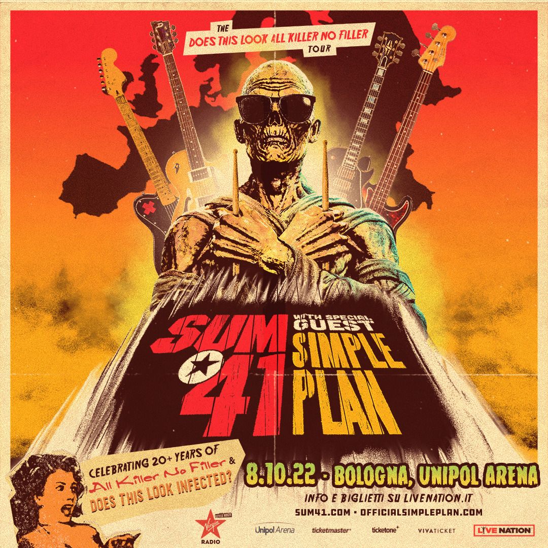 In occasione del ventennale di “All Killer No Filler” tornano in Italia con una tappa del “Does This Look All Killer No Filler Tour” i SUM 41, sabato 8 ottobre 2022 all’Unipol Arena di Bologna. Dopo aver annunciato il tour insieme negli Stati Uniti, sarà la band multiplatino SIMPLE PLAN ad aprire il concerto.