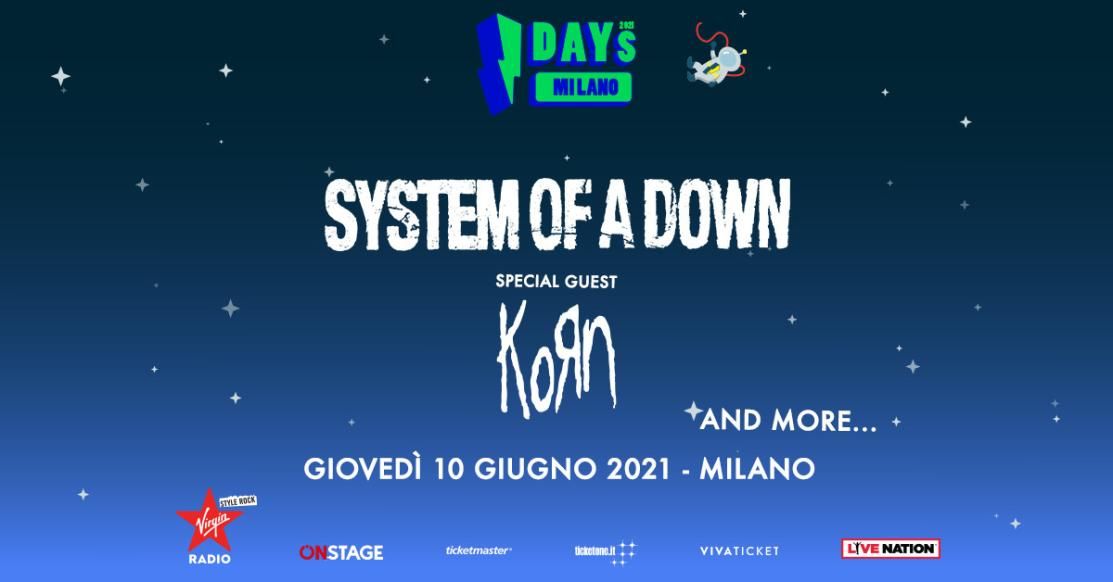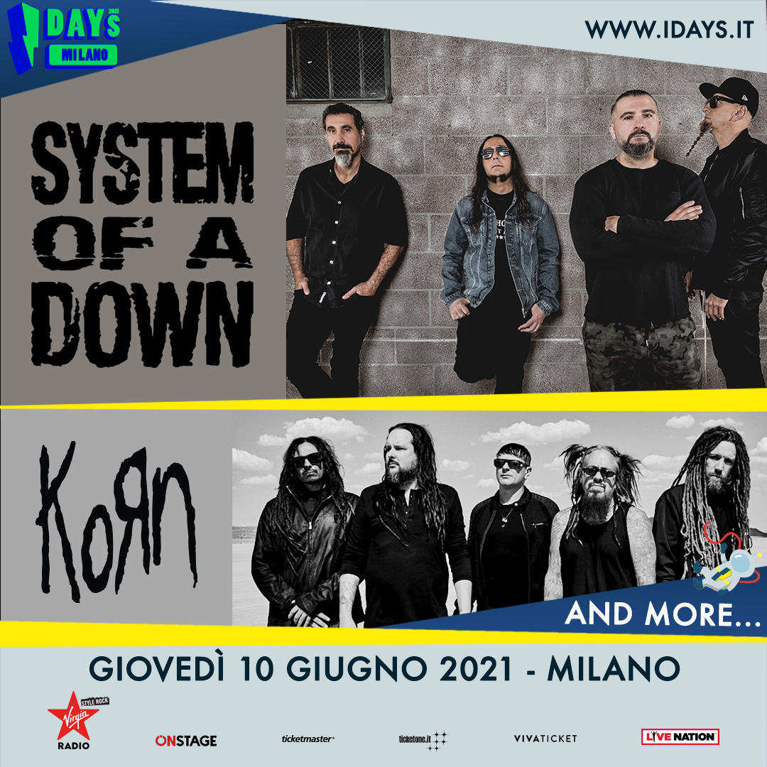 I biglietti del festival acquistati in precedenza per la giornata dei System Of A Down + Korn del 12 giugno 2020 restano validi per il nuovo show del prossimo 10 giugno 2021.