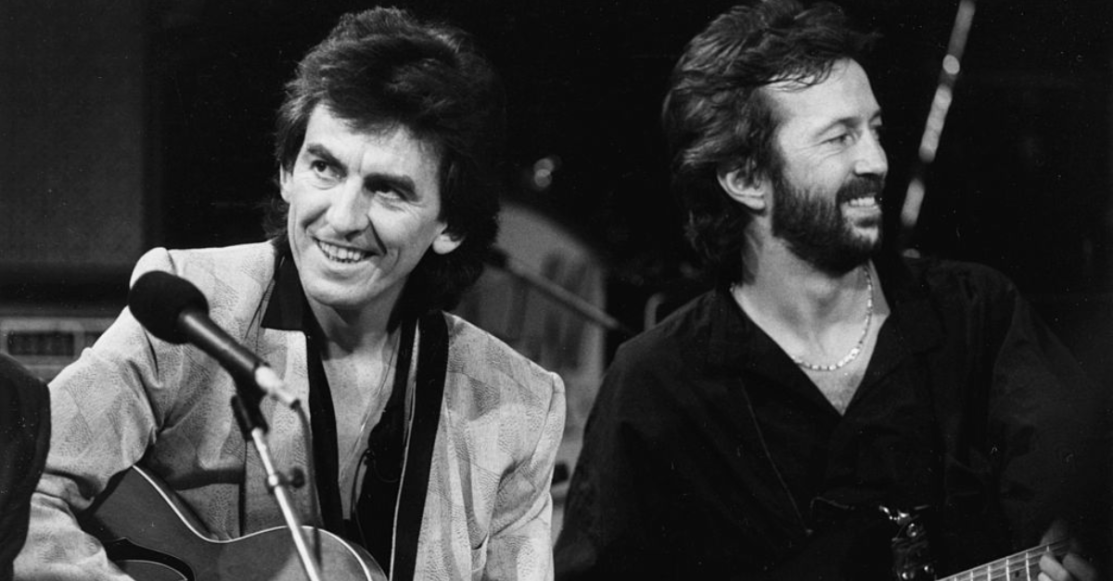 C’è un assolo di chitarra misterioso che è entrato nella storia del rock come uno dei momenti più alti della musica inglese, l’incontro perfetto tra il blues e il rock trasformato in opera d’arte, tra la profondità emotiva e l’autenticità e il puro genio: è l’assolo di Eric Clapton in While My Guitar Gently Weeps, capolavoro di George Harrison registrato dai Beatles sul White Album nel 1968. Una collaborazione misteriosa perché il nome di Eric Clapton non compare nei credit dell’album. George Harrison scrive While My Guitar Gently Weeps al ritorno dal viaggio dei Beatles in India, basandosi sul libro di filosofia orientale I Ching e all’idea che tutto sia interconnesso, al contrario della visione occidentale per cui le cose sono spesso frutto di coincidenze.
