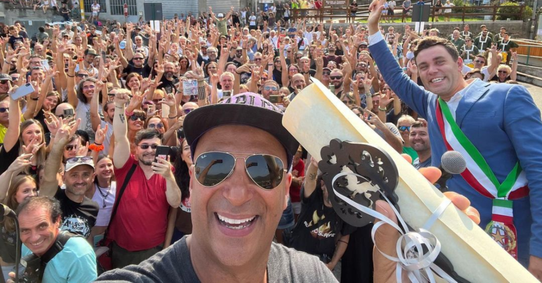 Oltre all’onorificenza il chitarrista ha ricevuto una grandissima accoglienza da parte dei residenti della città che lo hanno accolto in piazza in un clima di grande festa.