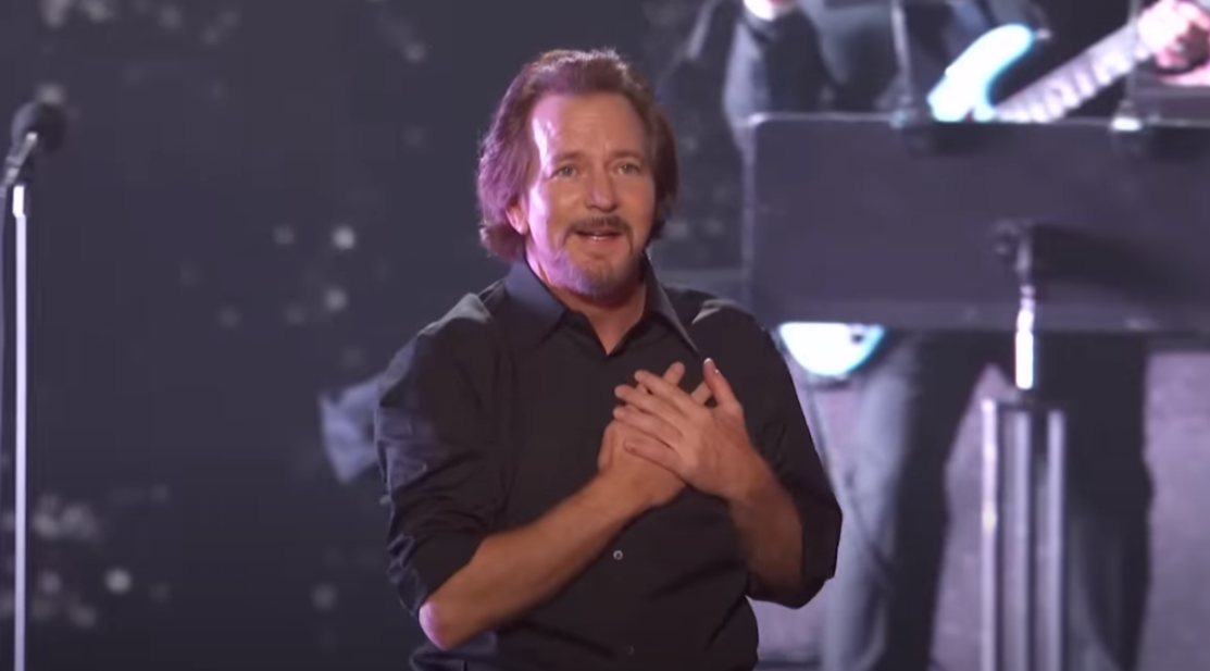 La band di Bono e The Edge avrebbe dovuto essere omaggiata sul palco da Mary J. Blige con una reinterpretazione di “One” ma, a causa d un’indisposizione dell’artista, è stato chiamato il frontman dei Pearl Jam Eddie Vedder che, introdotto da Sean Penn, ha portato sul palco due incredibili versioni di One ed Elevation.