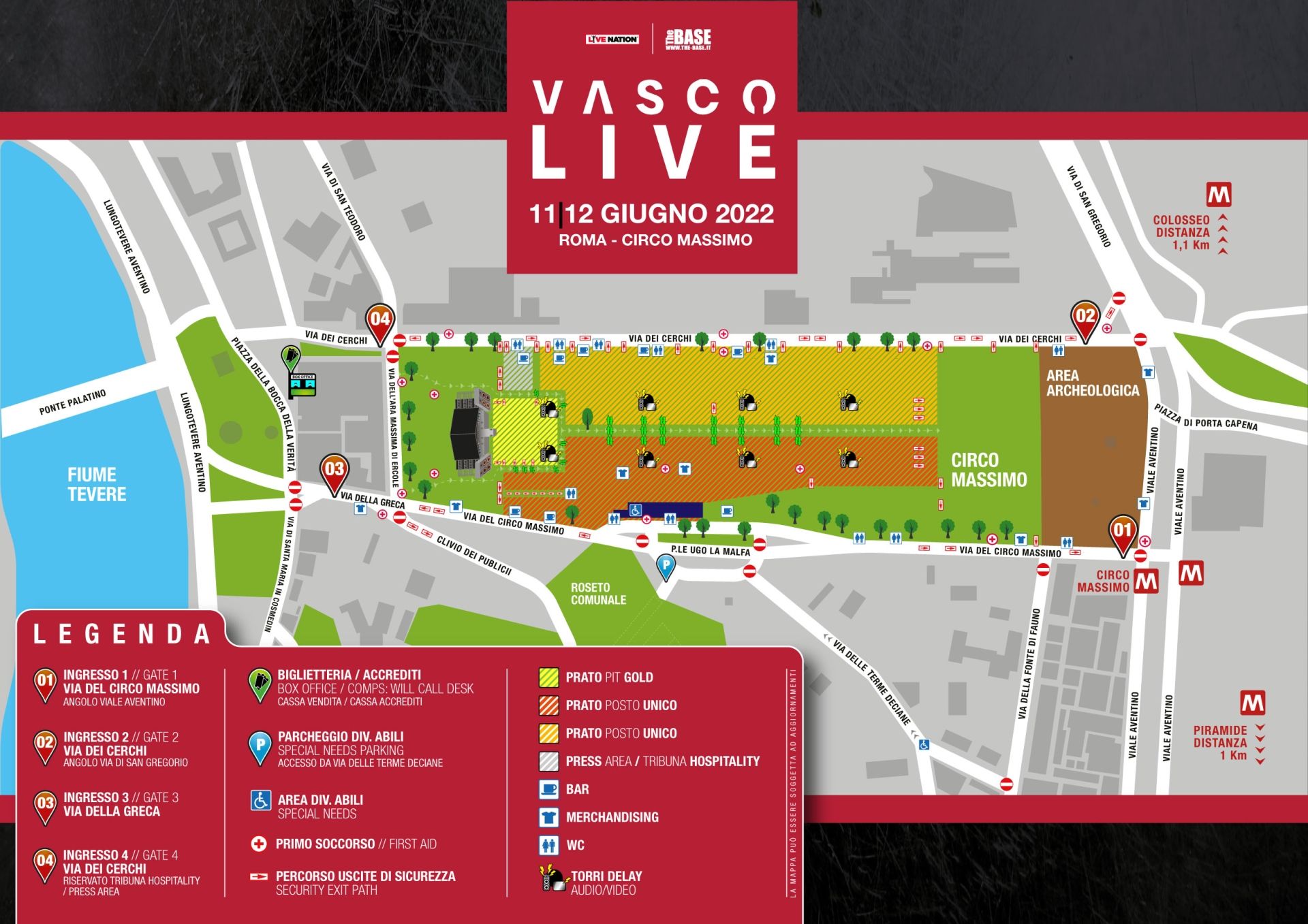 Si invitano tutti coloro che parteciperanno al concerto a lasciare la macchina in prossimità dei parcheggi di scambio e raggiungere Circo Massimo con i mezzi pubblici.