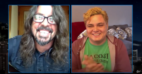 Dave Grohl è stato ospite dell'ultimo episodio del Jimmy Kimmel Live, il popolare talk show americano, andato in onda rigorosamente da remoto nel rispetto del distanziamento sociale a causa del coronavirus. All'interno della puntata il presentatore Jimmy Kimmel aveva ospite in collegamento TJ Riley, un infermiere del pronto soccorso del Jacobi MedicaL Center di New York colpito dal coronavirus. All'interno del collegamento ad un certo punto è intervenuto da casa il leader dei Foo Fighters che ha voluto regalare al giovane infermiere una bellissima versione acustica di Everlong.